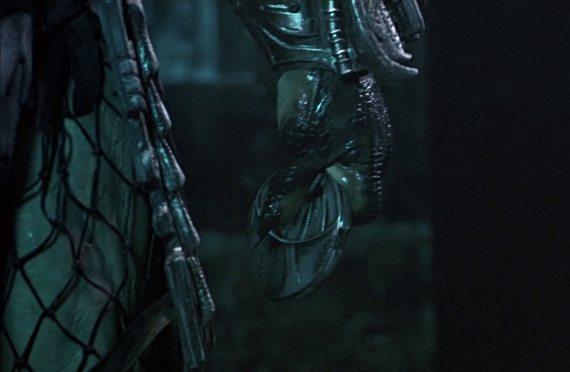 Despite its primary function as a throwing weapon, the Predator Shuriken can also serve as a close-combat tool. When held by its central grip, it becomes a multi-bladed slashing device. The Predator can use it to block attacks, stab enemies, or slice in wide arcs. This dual functionality makes it especially dangerous in confined environments or during hand-to-hand combat. The sharpness of the blades allows it to pierce tough materials, including armor and bone. It is often used alongside other melee weapons like wrist blades and combi-sticks, enhancing the Predator’s options in battle. Famously, Scar Predator used the shuriken to slice a Xenomorph's head in half, revealing its brains.